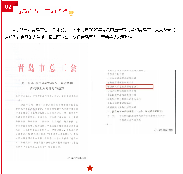“五一”國際勞動節(jié)前夕,省市區(qū)各級總工會相繼出臺了表彰文件,聚大洋集團喜報頻傳!