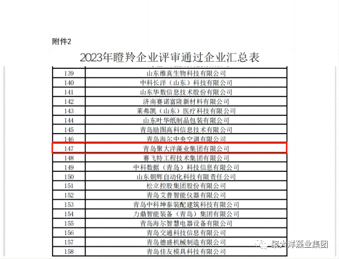 近日,山東省工業(yè)和信息化廳、山東省地方金融監(jiān)督管理局、中國人民銀行濟(jì)南分行聯(lián)合下發(fā)《關(guān)于公布2023年度山東省瞪羚、獨(dú)角獸企業(yè)的通知》(魯工信創(chuàng)〔2023〕138號(hào)),公布了2023年度山東省獨(dú)角獸企業(yè)名單、山東省瞪羚企業(yè)名單。其中,聚大洋集團(tuán)被認(rèn)定為山東省瞪羚企業(yè)。